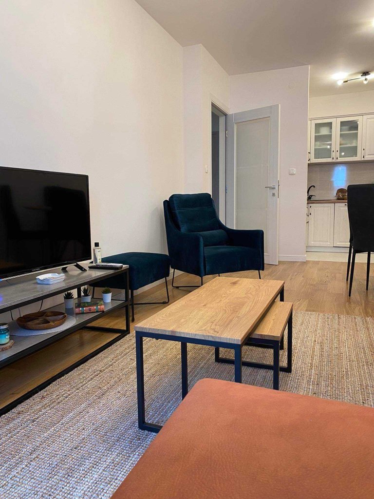 The apartment of 46m2 has a beautiful and comfortable layout and is fully equipped with modern and quality furniture.