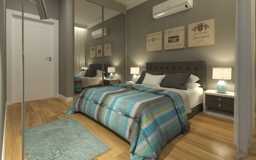 The apartment has 95 m2 and is located on the ground floor. The apartment has 2 separate bedrooms, 2 bathrooms, large living room with an open kitchen and a dining area and a large terrace. The apartment comes with ac units in every room and finished bathrooms.