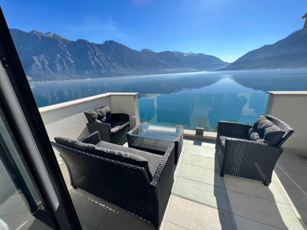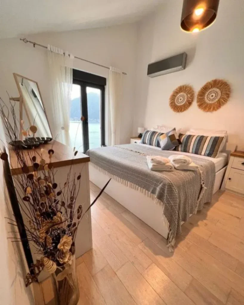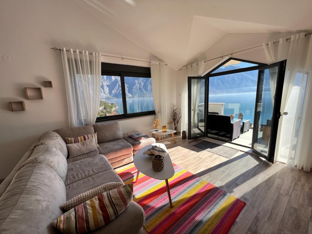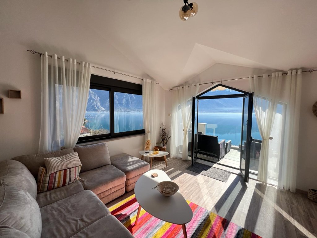 Entertain guests in the spacious living room, complete with access to a sprawling balcony that offers captivating vistas of the azure bay—an idyllic setting for relaxation and alfresco dining.