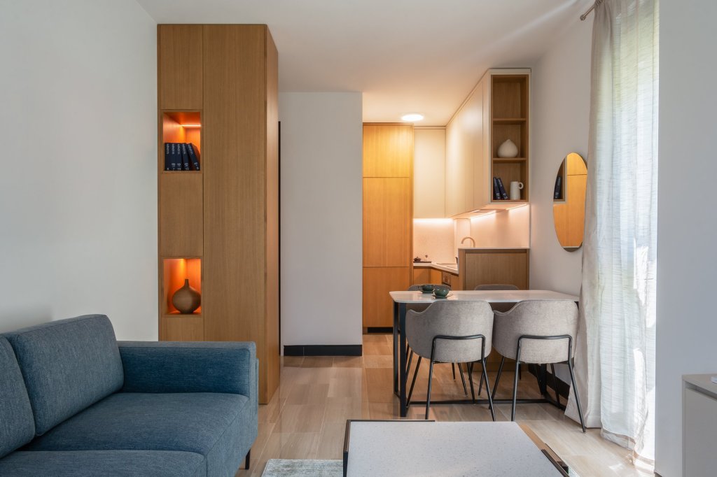 Located in the luxurious Tenet building, between Gorica Hill and the Moraca River, in the heart of Podgorica’s diplomatic neighborhood, this 43m² apartment offers an exceptional urban lifestyle.